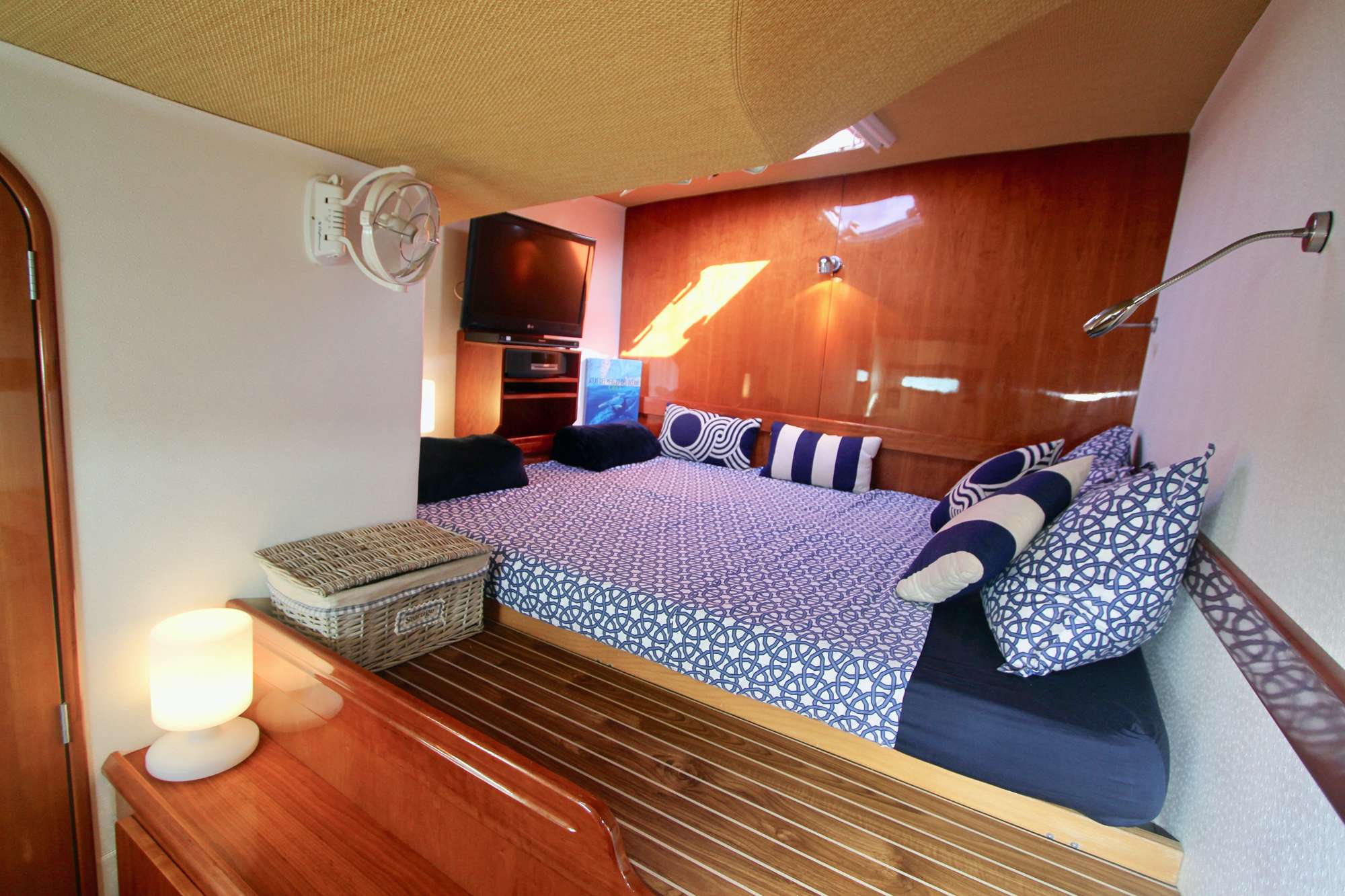The starboard forward cabin has a large shower cubicle, and shares the toilet with the rear starboard cabin, which is situated in the private companionway, outside of the forward cabin.